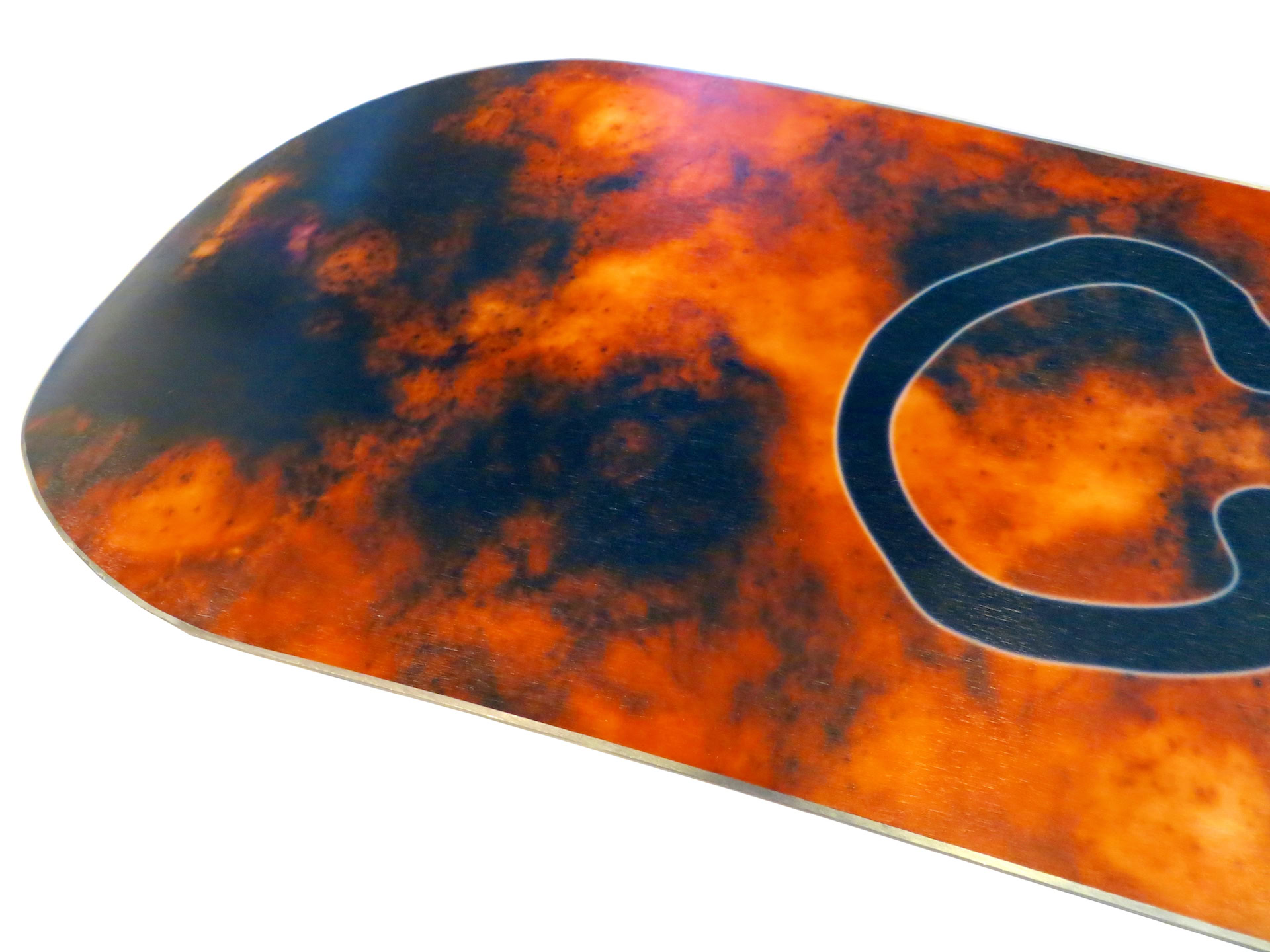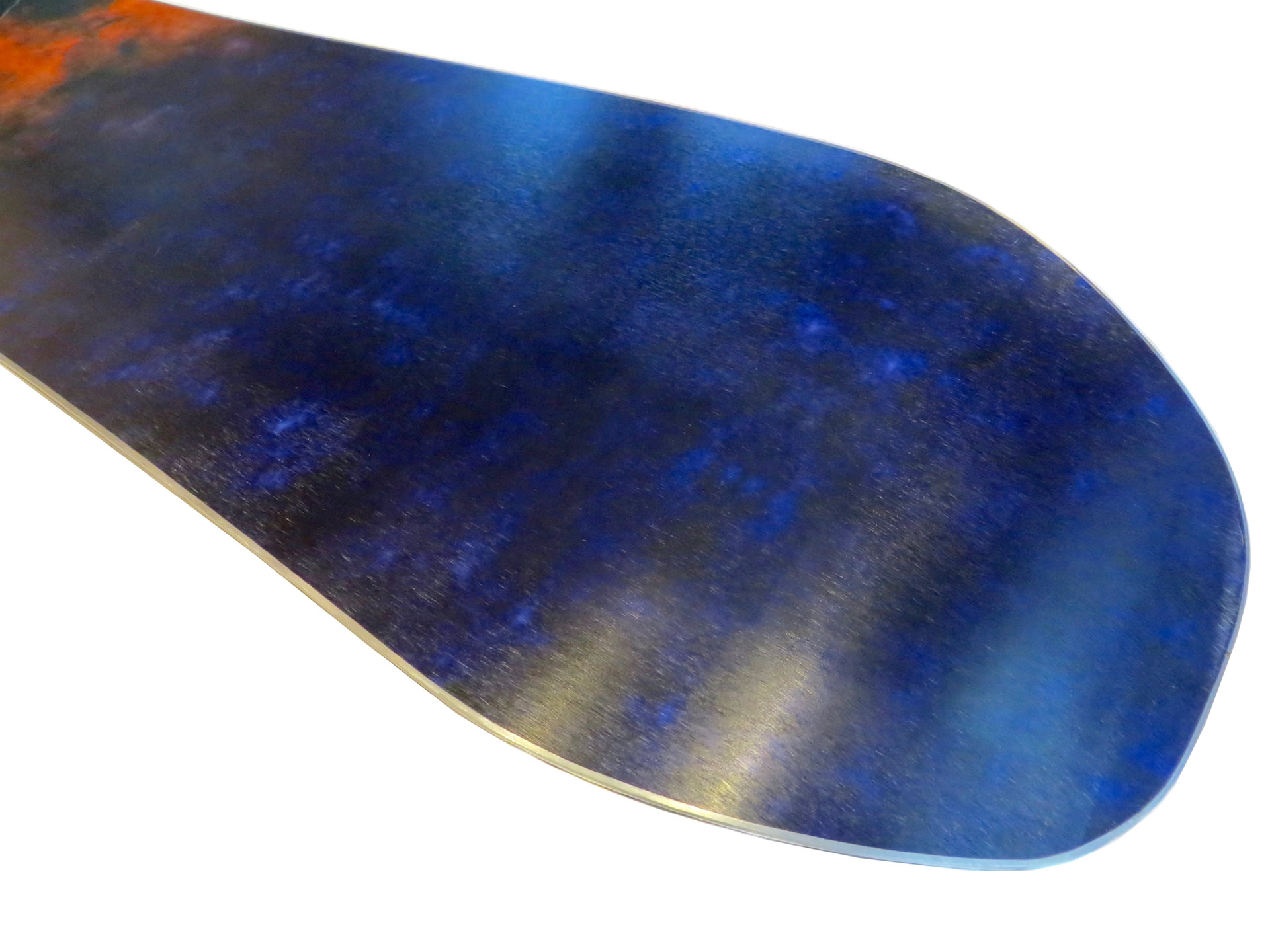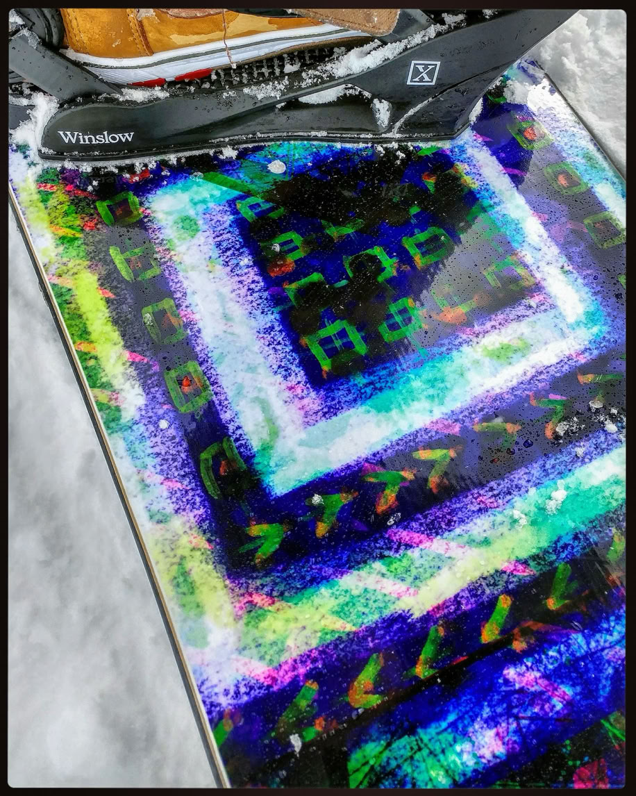 2 center stringers built with 450 layers of bamboo run through the wood core of bamboo, paulownia, and poplar - layered with triax-pattern fiberglass. Carbon fiber reinforcements on nose and tail, a sintered base, UHMWPE sidewalls, and dampened with an internal rubber bond. Made in the USA.
