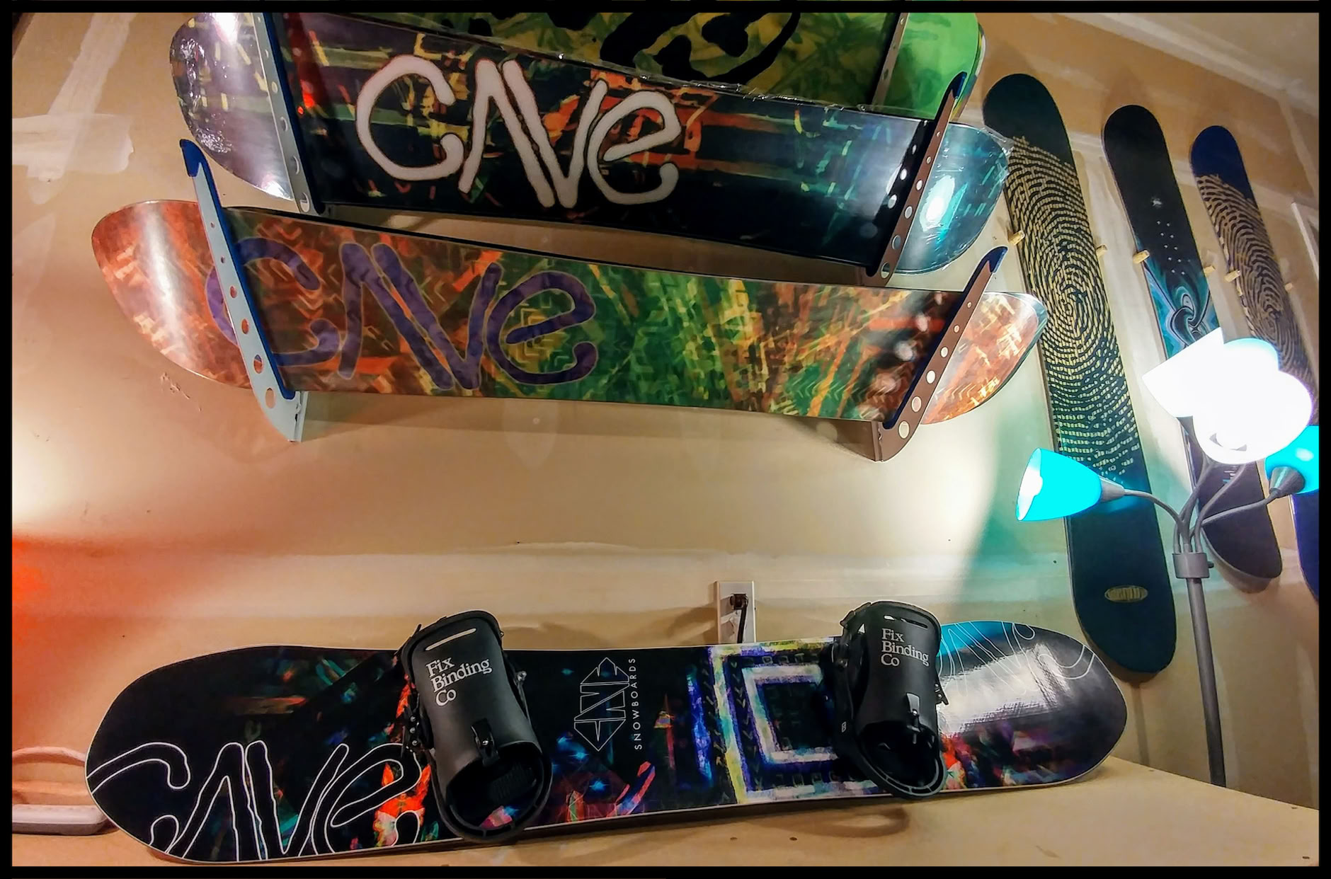 Art design is a vibrant abstract composite featuring elements from the Cave “Chroma” concept series, along with the original Cave logos. Production total of two units.